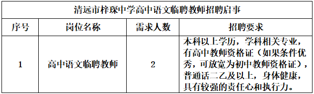 清遠(yuǎn)市梓琛中學(xué)急聘高中語(yǔ)文臨聘教師